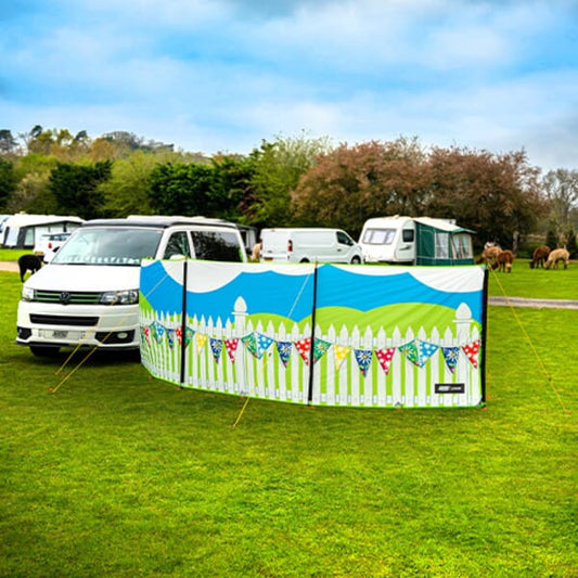 "SUMMER DAYS" 3-PANEL WINDBREAK - STEEL POLES & PEGS - 500X140CM
