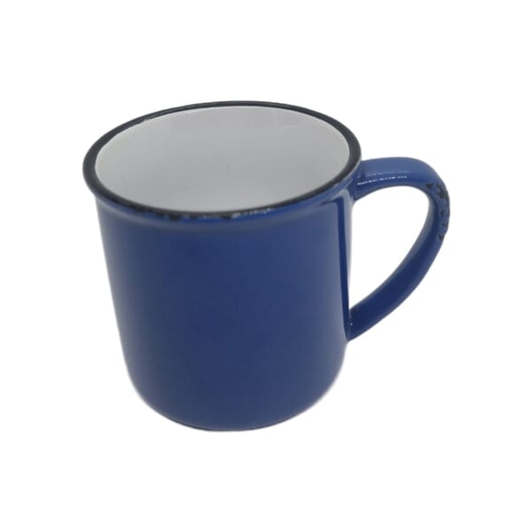 Blue enamel mug. Ideal for camping, caravaning, boating, or at home when a sturdier mug is needed.