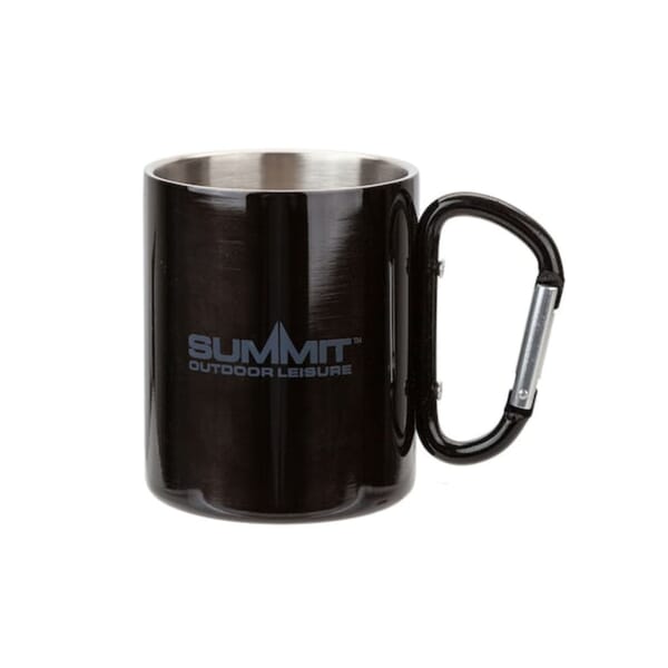 Upgrade your camping, boating or fishing experience with Summit International's Stainless Steel Carabiner Mug! Perfect for adventurers on the go.