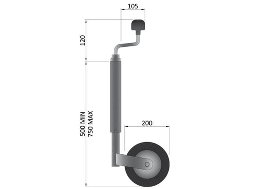 JOCKEY WHEEL 48MM TELESCOPIC 150KG